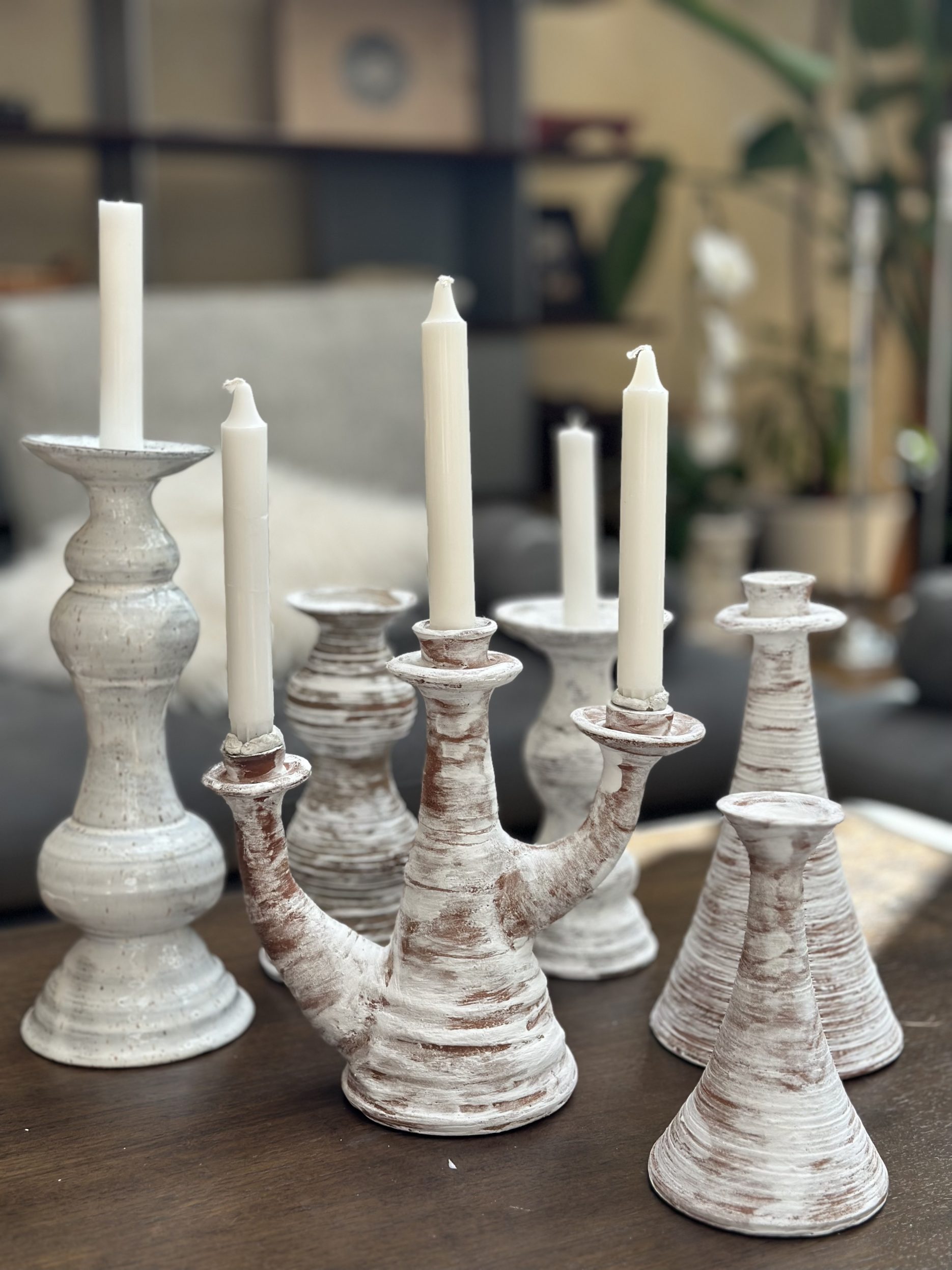 These candleholder have opinions about dark rooms — and bright ones too. A conversation starter before the candle is even lit. Handbuilt clay, glazes.