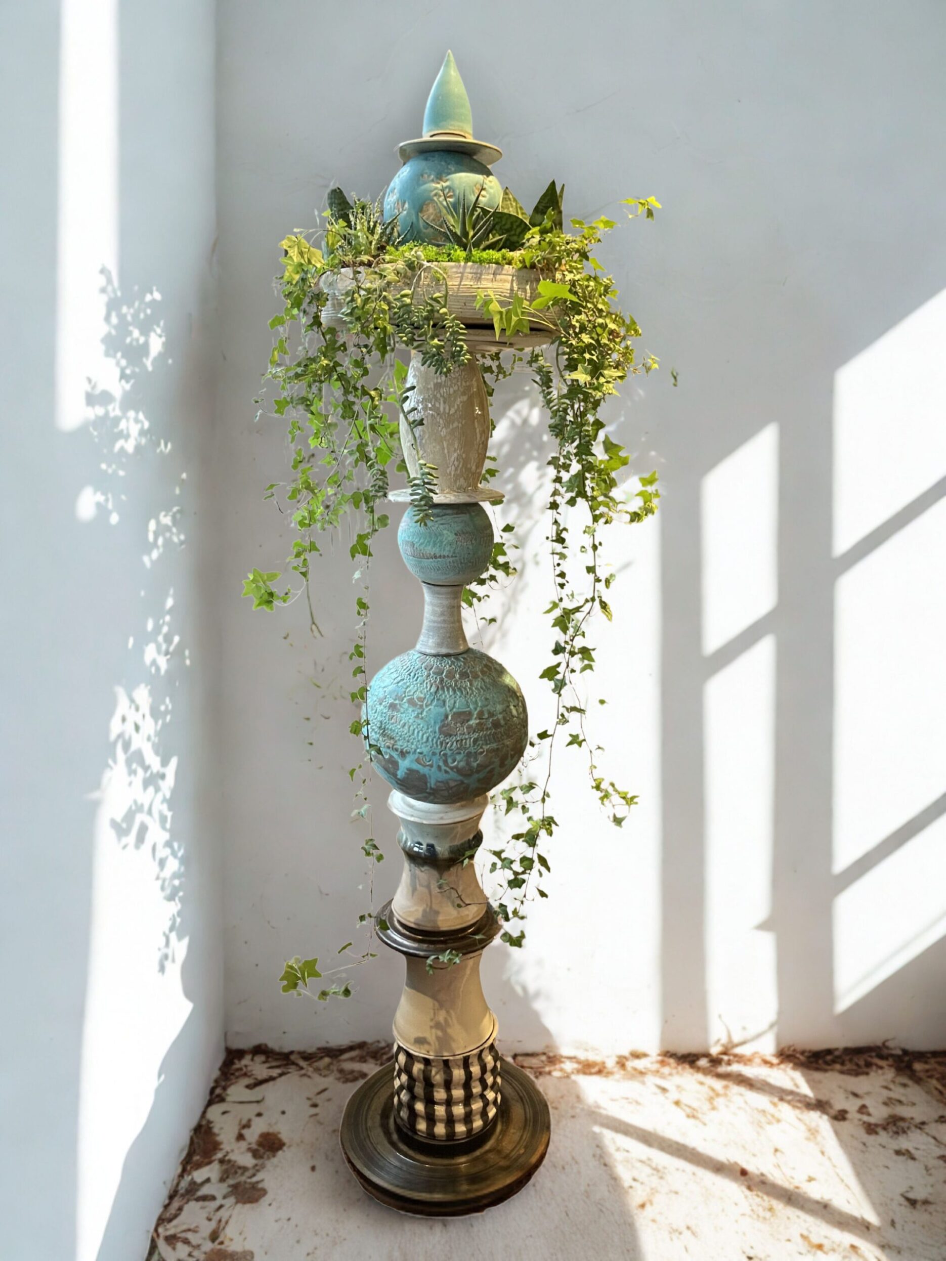 A little world of its own. This hand-built ceramic globe glows in deep turquoise — the kind of colour that makes you think of tropical water, summer skies, and very good days. Sealed for outdoor use and happy to live in the garden year-round, it brings a quiet pop of joy to patios, planters, and shady corners alike. Each one is one-of-a-kind.